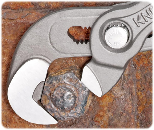 ساختار انبرهای کلاغی بگونهای است که مانع از لغزش ابزار میشود و هیچ آسیبی به پیچ یا مهرهها وارد نمیکند. انبرهای کلاغی شرکت کنیپکس دارای یک مفصل متغیر با ساختار دندانهای هستند که از جابجا شدن زبانهها در حین فشار زیاد جلوگیری میکند.