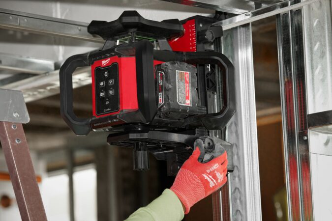 لیزر قرمز روتاری خارجی به همراه تنظیم دوگانه شیب M18: چنین لیزری برای تسطیح، همتراز کردن و اجرائیات مربعی ایدهآل است و انطباق درجات را سریع و دقیق فراهم میکند. همچنین میتواند شیب لیزر را از راه دور همراه یک صفحهنمایش قابل حمل، تنظیم کند که دقت 1/16 اینچ در 100 فوت را ارائه میدهد.