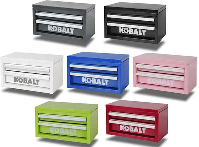 رنگبندیهای بیشتری از این جعبه ابزار نیز مانند قرمز، سبز لیمویی و خاکستری وجود دارد که هنوز در دسترس خریداران قرار نگرفتهاند. رنگهای سفید و صورتی مینی جعبه ابزار کبالت نیز در فروشگاه فیزیکی Lowe وجود ندارند و امکان سفارش آن تنها به صورت آنلاین وجود دارد. جعبه ابزار mini Kobalt 2 با قیمت 19.98 دلار به فروش میرسد اما برای ارسال آن به دست مصرف کننده، 5.99 دلار هزینه اضافی نیز از خریداران اخذ میشود.