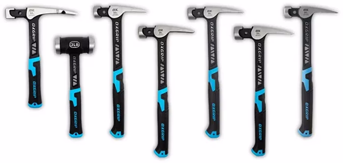 همه چکشهای سری Ox Tools Pro UltraStrike برای این که به طور امن و راحتتری در دست نگه داشته شوند، به یک دسته لاستیکی ارگونومیک ضد لغزش مجهز هستند. چکشهای Framing به سری منحنی شکلی مجهز هستند که قابلیت نگه داشتن میخ با نیروی مغناطیسی دارند و انتهای چکش نیز به عنوان میخ کش عمل میکند.