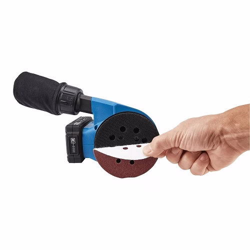 این دستگاه از پدهای سنباده پنج اینچی گرد با اتصال قلاب و حلقه نواری استفاده میکند. هر پد دارای سوراخهایی برای جمعآوری گرد و غبار است. قسمت پشتی دستگاه محل قرارگیری کیسه جمعآوری گرد و غبار است. این کیسه تمام گرد و غبار ایجاد شده در هنگام سنباده زدن را جمعآوری میکند. پس از استفاده، میتوانید این کیسه را از دستگاه جدا کنید و به راحتی و به طور بهداشتی دور بیندازید.